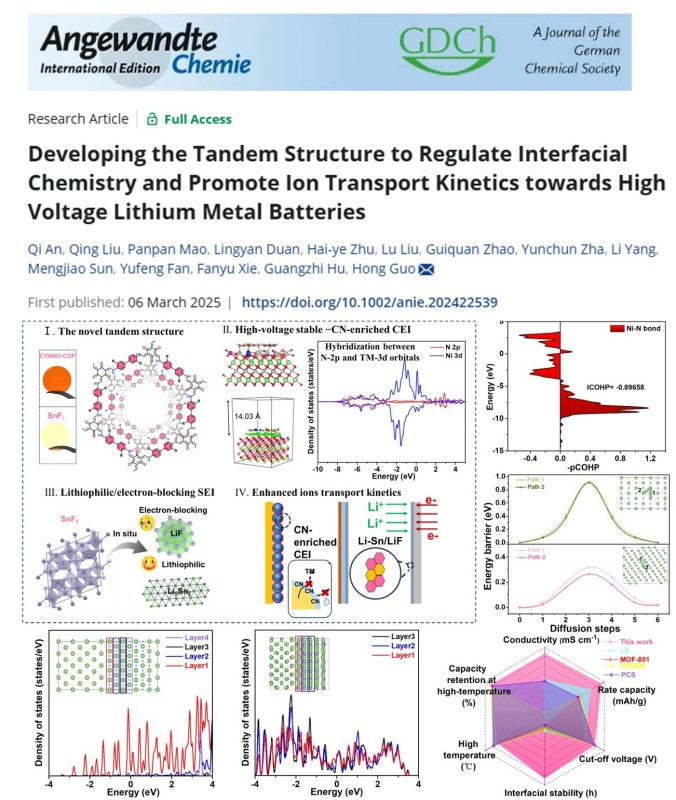 近日,bevitor伟德国际1946(西南联合研究生院)郭洪教授团队在Angewandte Chemie International Edition期刊发表题为“Developing the tandem structure to regulate interfacial chemistry and promote ion transport kinetics towards high voltage lithium metal batteries”的研究论文。该研究采用串联隔膜的策略在锂金属电池中同时构建双增强稳定的电极-电解质界面,解决正负极和电解质之间的催化副反应等界面问题(https://doi.org/10.1002/anie.202422539)。bevitor伟德国际19462023级博士研究生安琪为论文的第一作者,郭洪教授为通讯作者。