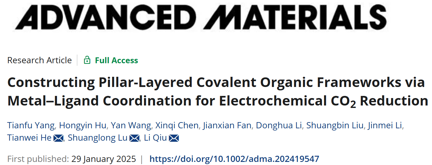 近日,bevitor伟德国际1946邱立课题组在Advanced Materials期刊发表题为“Constructing Pillar-Layered Covalent Organic Frameworks via Metal–Ligand Coordination for Electrochemical CO2 Reduction”的研究论文(https://doi.org/10.1002/adma.202419547)。该研究首次提出了层柱型共价有机框架(PL-COFs)的概念,并成功利用金属配位策略实现其构筑。