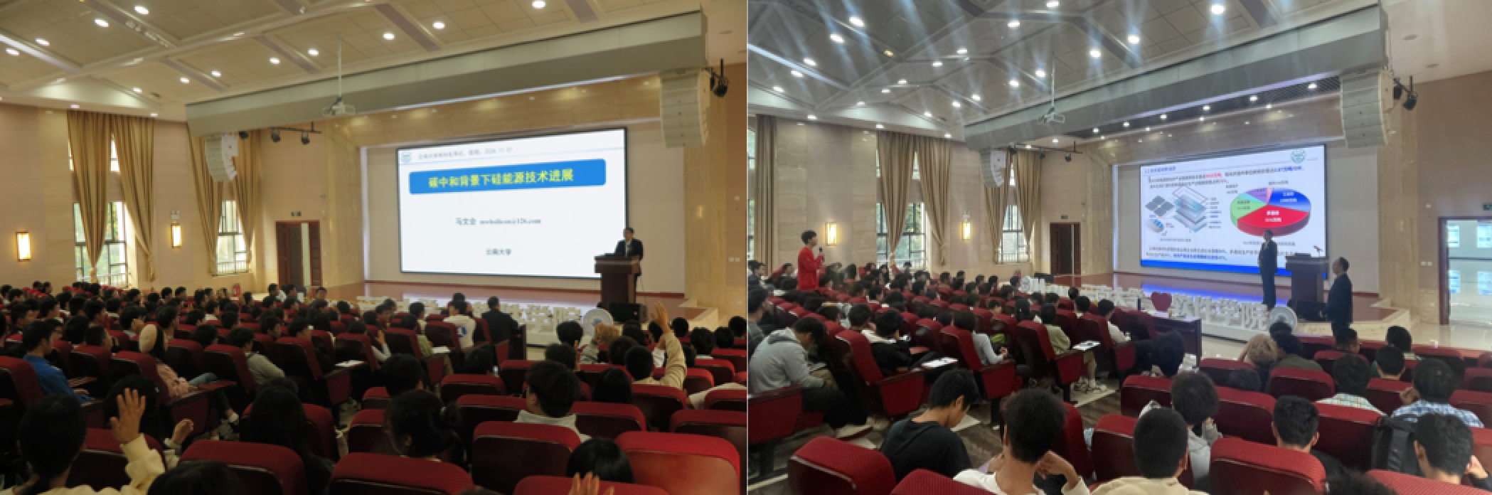 讲座结束后,同学们积极提问,与马董事长就硅材料能源开发、我国新材料及新能源领域的发展等话题进行了深入的交流与讨论,现场气氛热烈。马董事长幽默风趣的讲授风格赢得了在场师生的一致好评。这堂课不仅拓宽了大家的知识视野,还激发了同学们对新材料和新能源领域研究的浓厚兴趣。