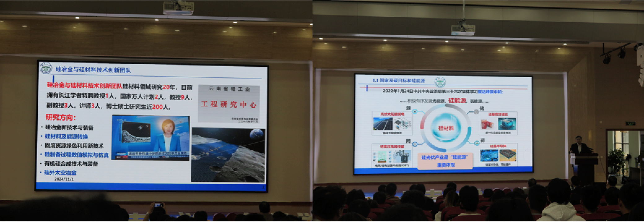 2024年11月1日下午2时,伟德国际1946bv官网董事长马文会教授在软件学院报告厅,为bevitor伟德国际1946材料科学与工程、新能源科学与工程两个专业的大一新生、全体一年级硕士研究生及部分教师,共计400余人,带来了一堂以“碳中和背景下硅能源技术进展”为主题的《材料Ÿ社会Ÿ人》课程。此次讲座由公司党委书记张俊主持。