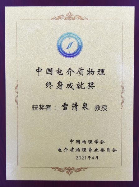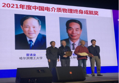 哈尔滨理工大学雷清泉院士获“2021年度中国电介质物理终身成就奖”。该奖项是中国物理学会电介质物理专业委员会于2014年设立的奖项,专门用于表彰为我国电介质物理理论和应用发展作出了卓越贡献的科学家,本年度全国仅2人获此殊荣。这是记者从4月9日至12日,在陕西省西安市召开的第十八届全国电介质物理、材料与应用学术会议暨第二十届全国电子元件与材料学术大会获悉的。该大会由中国物理学会电介质物理专业委员会组织召开。